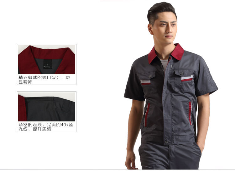 产品名称: 深蓝色细斜纹涤棉短袖工作服